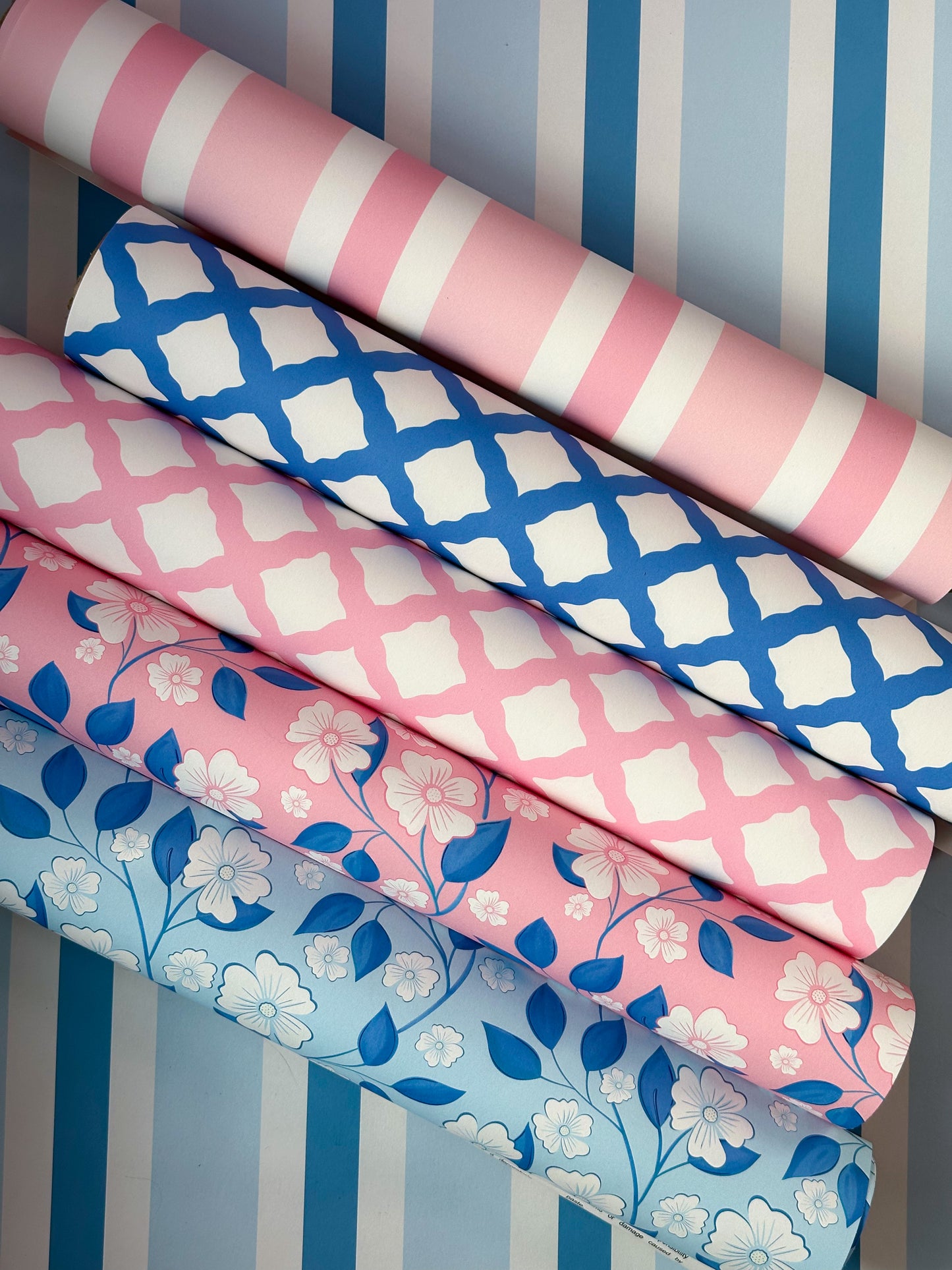 Transform your interior with my Duet Stripes wallpaper in my signature pink colours. The pink stripes add a playful touch while creating a visually appealing backdrop. What's best, this wallpaper will match other designs, like 'Citrus Bloom' in pink, 'Tumbling Tomatoes' in pink, or 'Blossom Trail' in pink and blue, so you can create the perfect maximalist room.
