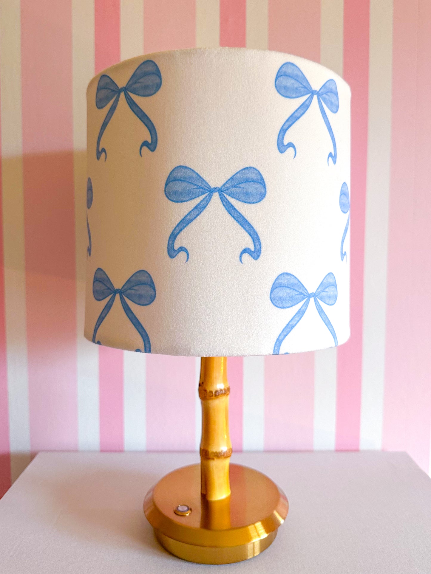 Elevate your space with the blue ‘A Bowtiful Day’ lampshade, featuring a luxurious velvet finish adorned with an elegant blue bows pattern in a delicate watercolour style. Perfect for tabletop or ceiling use, this lampshade adds a refined touch and soft, ambient lighting that transforms any room into a serene retreat. Its distinctive design blends classic charm with artistic flair, making it a standout accessory for your home décor.