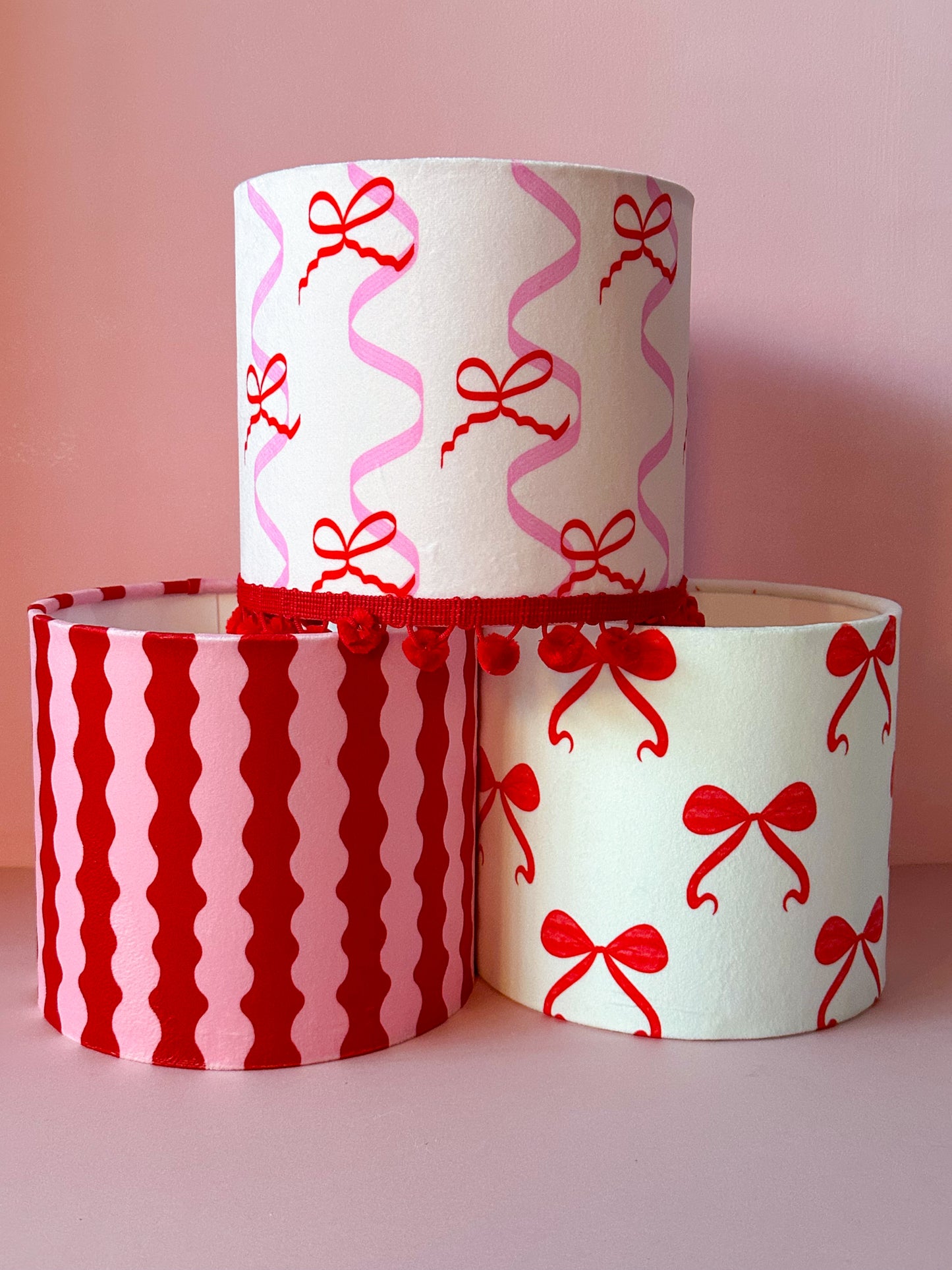 Bring warmth and character to your space with my red 'A Bowtiful Day' lampshade. Featuring a lovely watercolour bow pattern, it's designed to work wherever you need it most—on your nightstand, desk, or suspended overhead. The playful but minimalist design creates a gentle, inviting ambiance that makes any corner feel more personal and welcoming. Whether you're looking to refresh a room or add a thoughtful finishing touch, this versatile lampshade offers both practical lighting and the kind of beauty that makes you smile every time you see it.