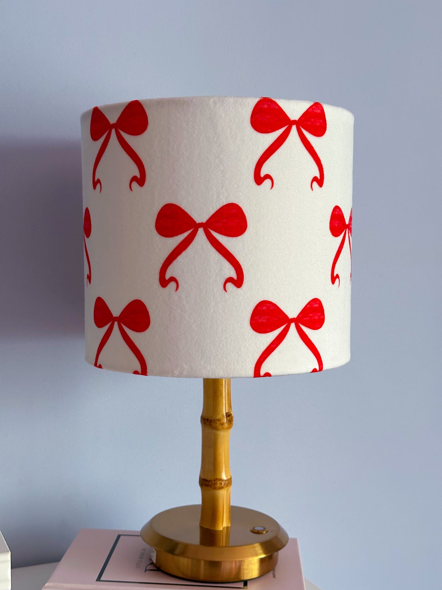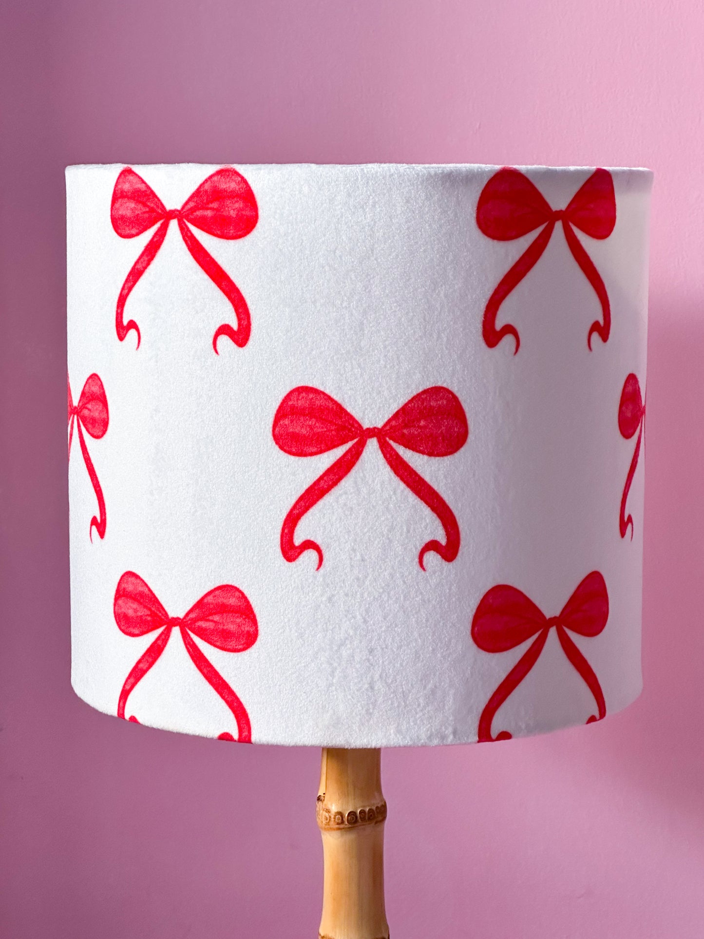 Bring warmth and character to your space with my red 'A Bowtiful Day' lampshade. Featuring a lovely watercolour bow pattern, it's designed to work wherever you need it most—on your nightstand, desk, or suspended overhead. The playful but minimalist design creates a gentle, inviting ambiance that makes any corner feel more personal and welcoming. Whether you're looking to refresh a room or add a thoughtful finishing touch, this versatile lampshade offers both practical lighting and the kind of beauty that makes you smile every time you see it.