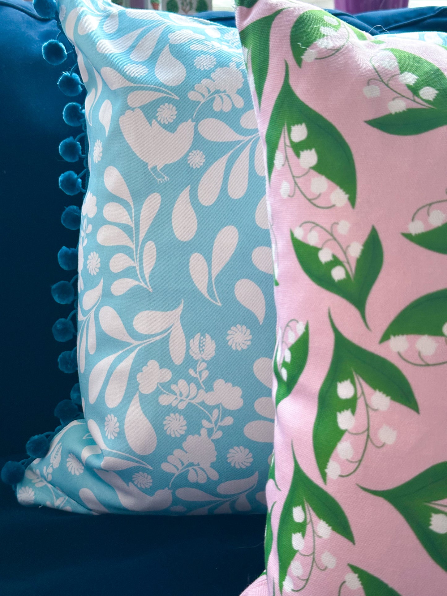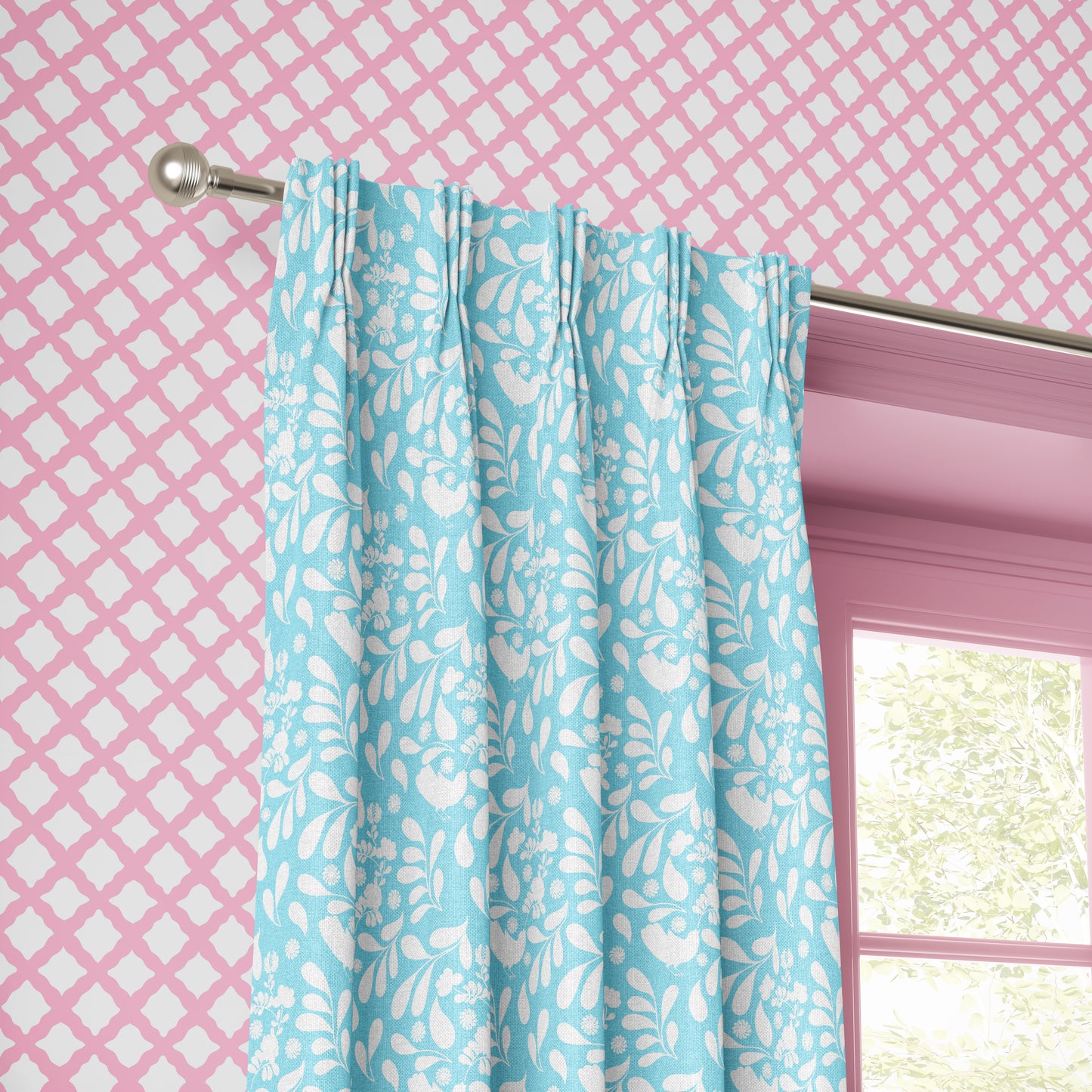 bird pattern fabric in light blue, light blue romantic designer fabric, singing bird fabric, blue and white fabric
