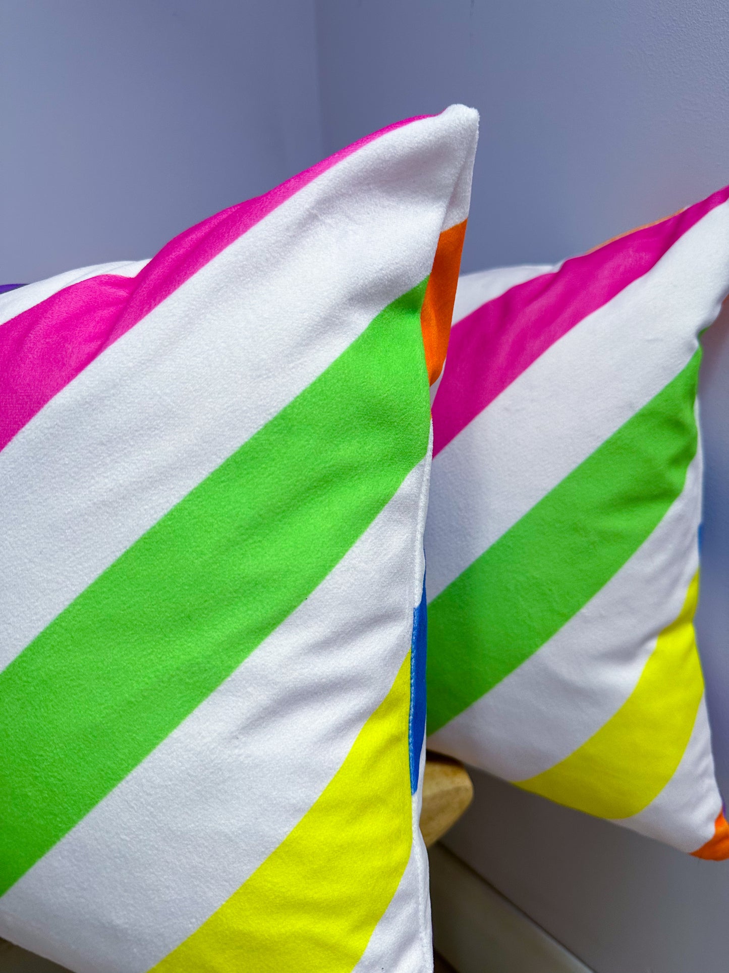 Experience comfort and style with my neon rainbow velvet cushion in delicious range of neon colours. The unique design adds a touch of elegance to any room, while the soft velvet material provides a cosy spot for relaxation. Upgrade your home décor with this eye-catching and comfortable cushion.