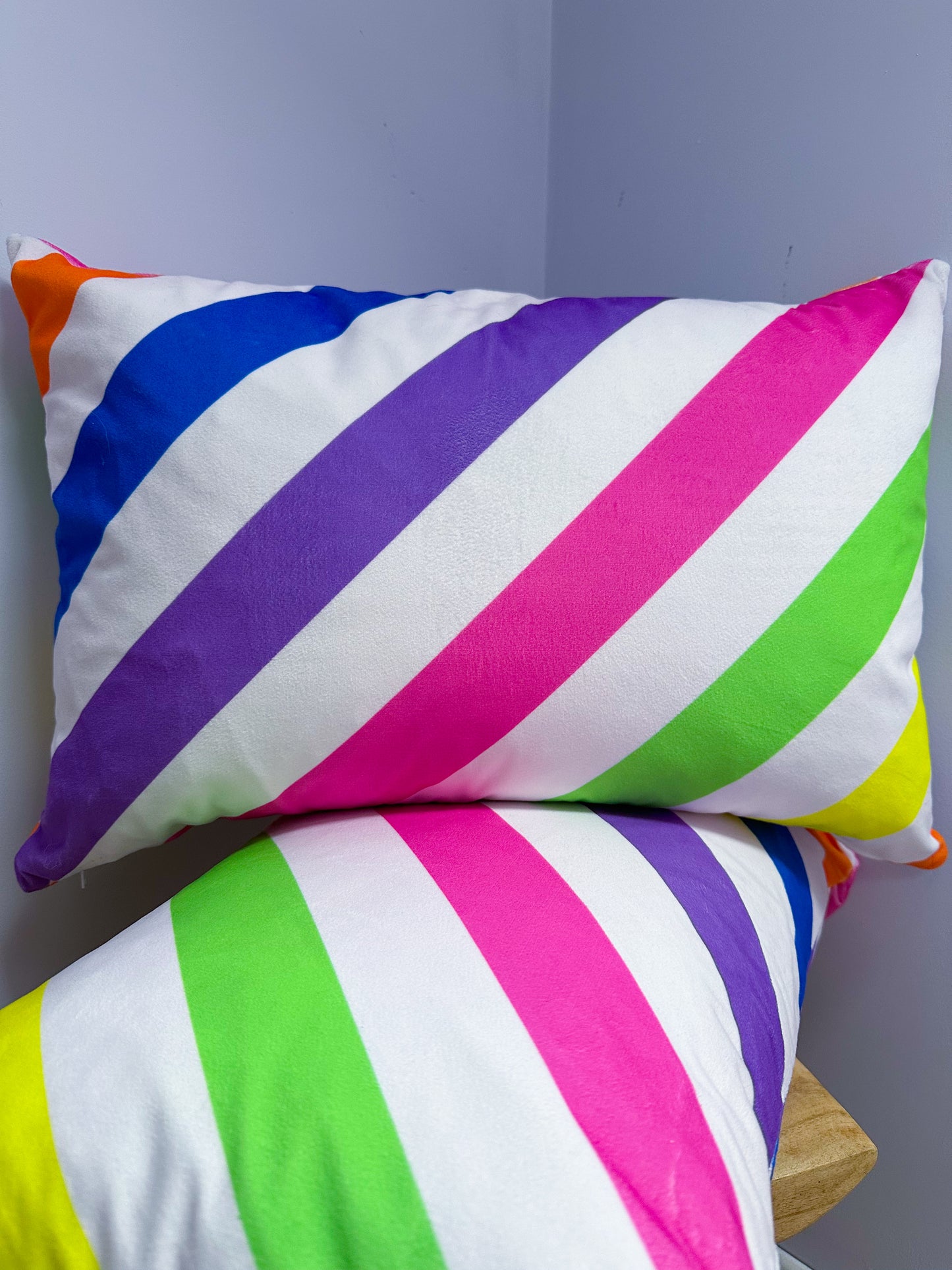 Every colour lover's must have interior piece is a rainbow cushion & this neon one will surely make an impression anywhere you place it!