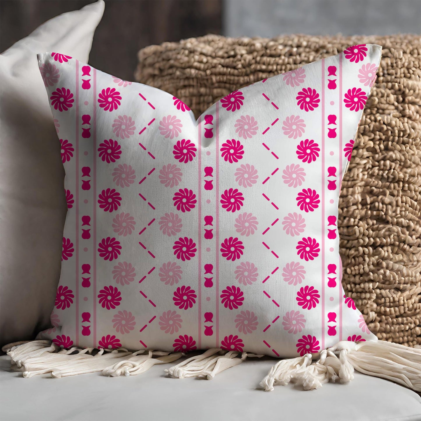 My design inspired by folklore motifs used in the Hungarian town of Debrecen is reimagined in pink hues. Available in four materials: soft velvet, luxury linen, in/outdoor canvas or cotton drill.