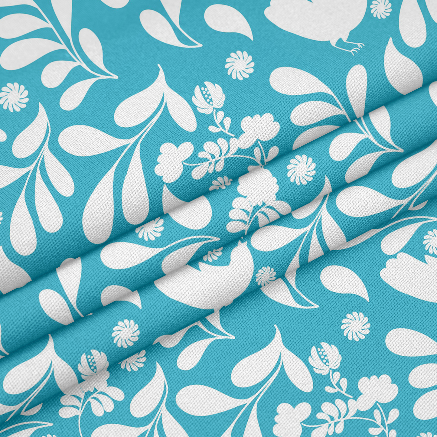 Discover my ‘Singing Birdie’ fabric in the prettiest light blue colour. This pastel blue fabric features a 'bird singing flowers' (traditional Hungarian motif) that is nestled among large leaves.