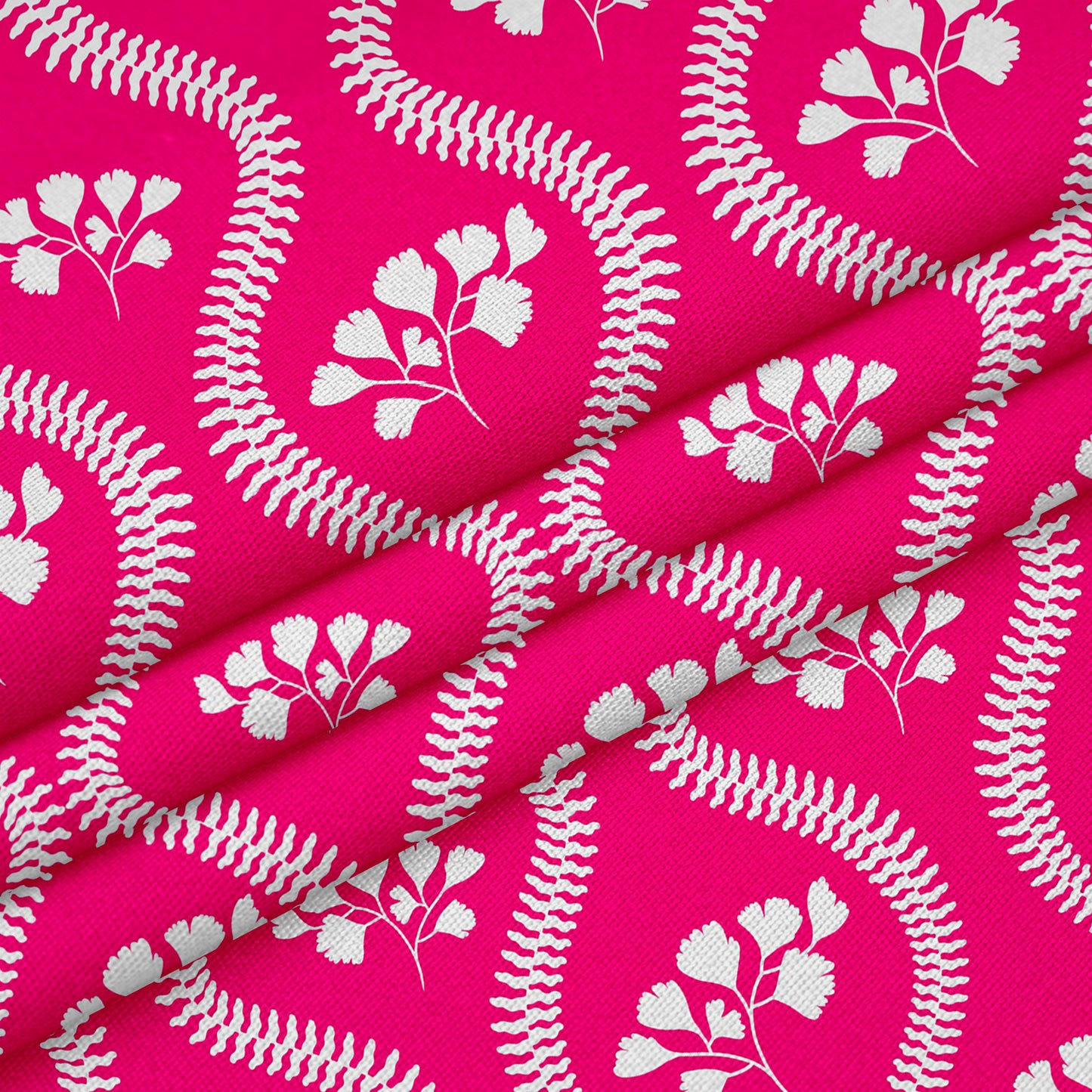 Hot pink fuchsia botanical fabric, trailing leaves pattern fabric, upholstery fabric with leaves, botanical luxury fabric, wavy leaves pattern