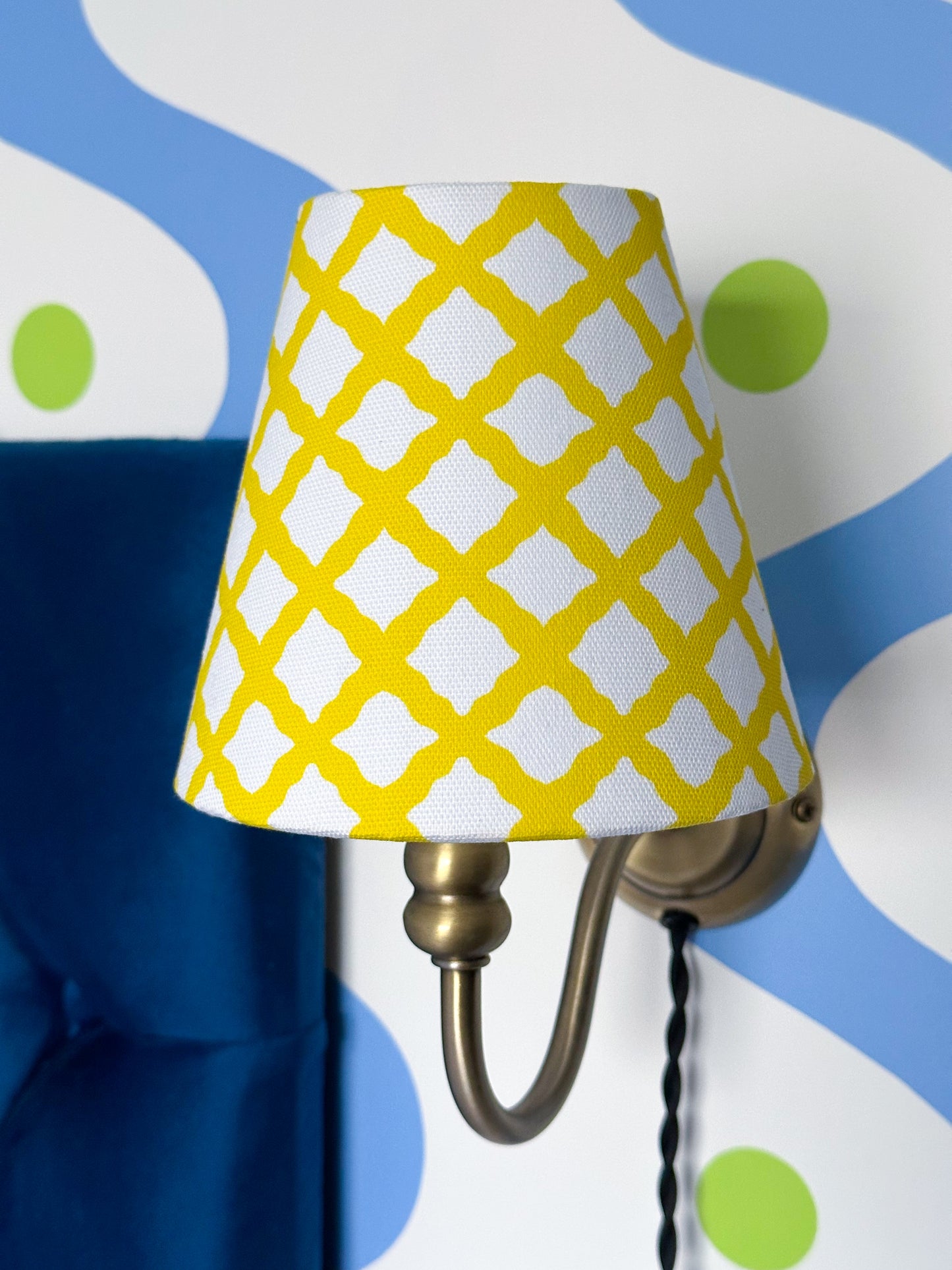 Yellow candle clip lamp shade With lattice design, trellis charm candle clip lamp shade, bright yellow lamp shade, luxury lamp shade, boutique hotel lamp shade, clip on lamp shade