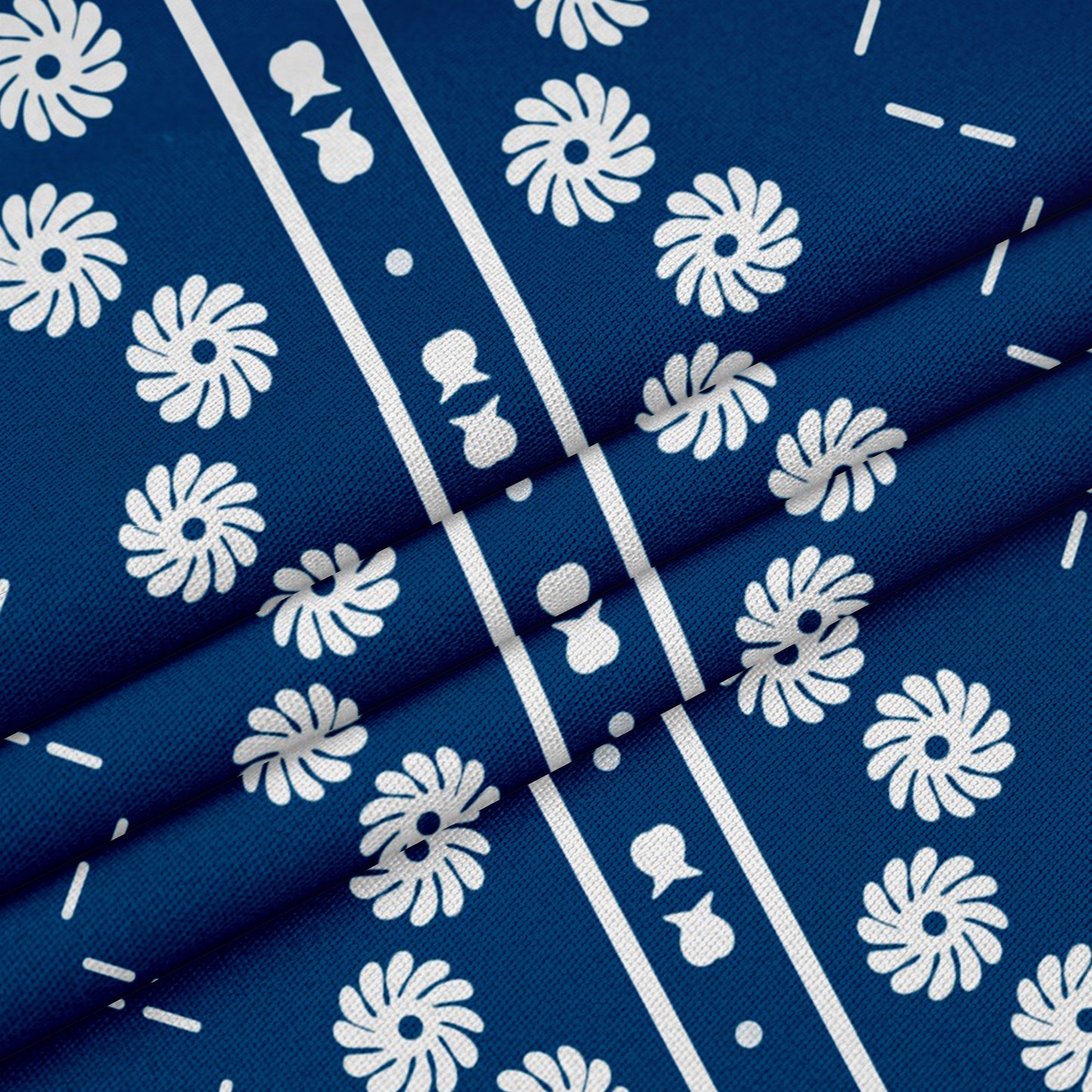 My design is inspired by vintage folklore motifs used in the Hungarian town of Debrecen. The mix of floral and stripe patterns are reimagined in modern white and navy blue colours. Available in four materials: soft velvet, luxury linen, in/outdoor canvas or cotton drill.