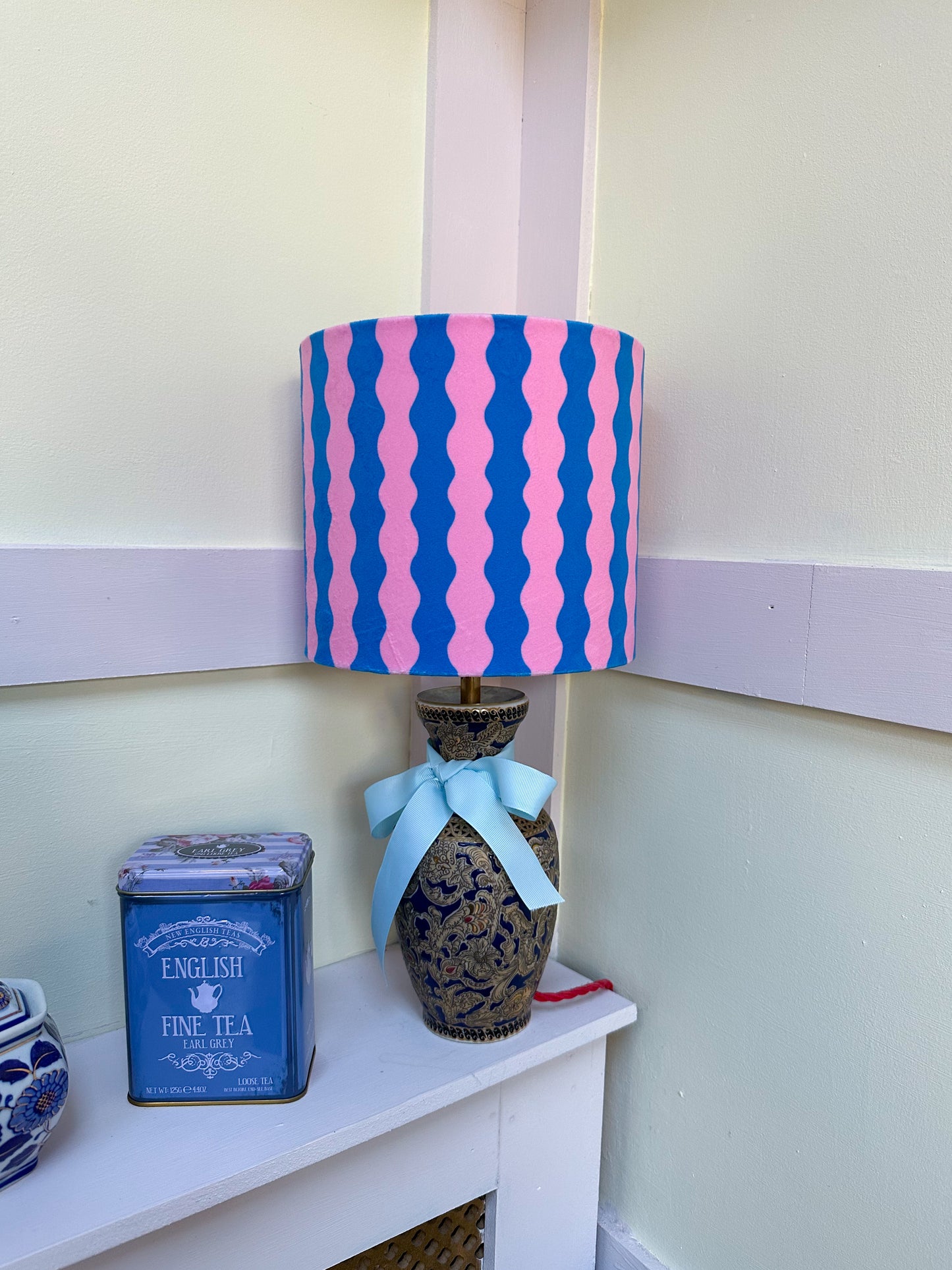 Every room needs a stunning ‘hero piece’, and this lamp with its striking turquoise and pink colours will stand up for the challenge.
