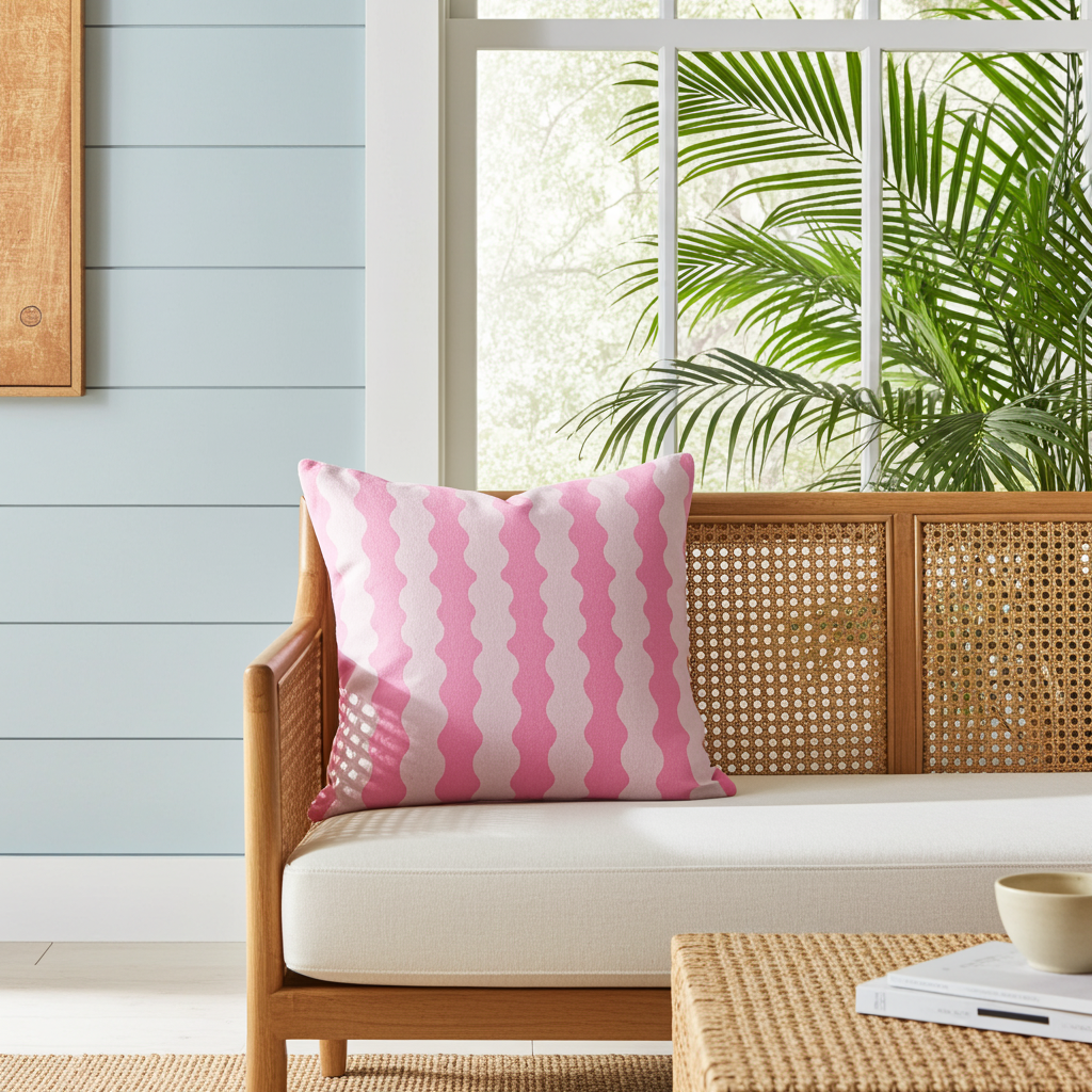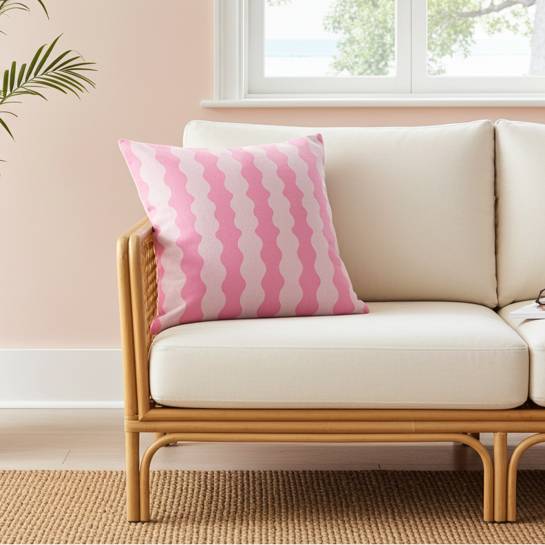 I have no doubt that this cushion will become all pink lovers' favourite cushion. It's pretty wavy design and soft pink hues will bring style to your sofa, while pairing with other pink, blue, pink, red or green cushions effortlessly.